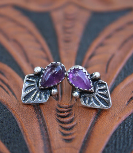 Stamped Amethyst Stud Earrings